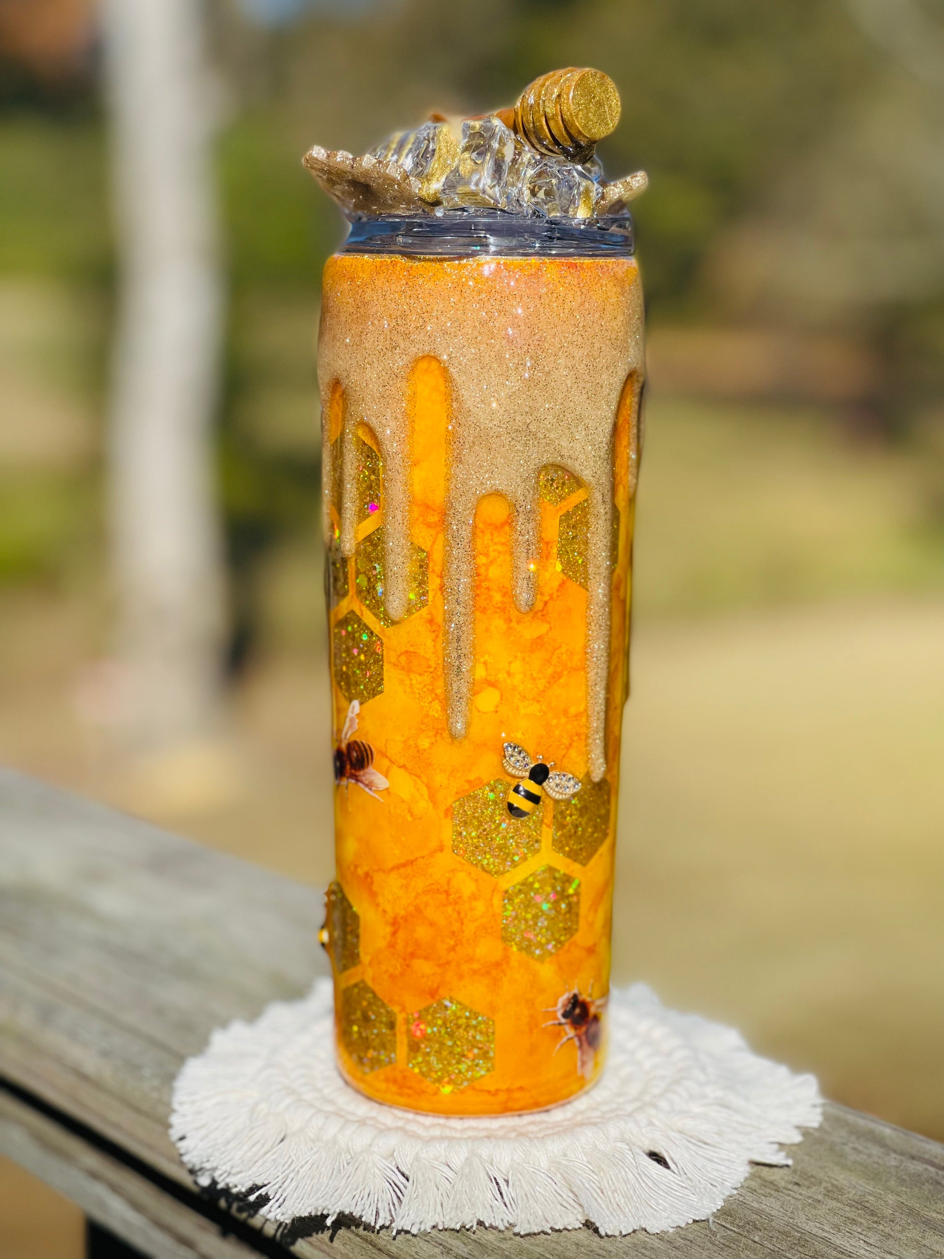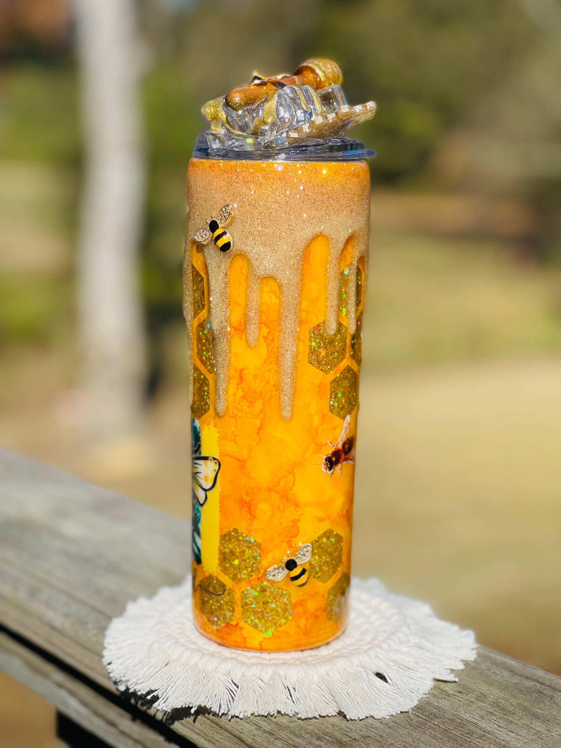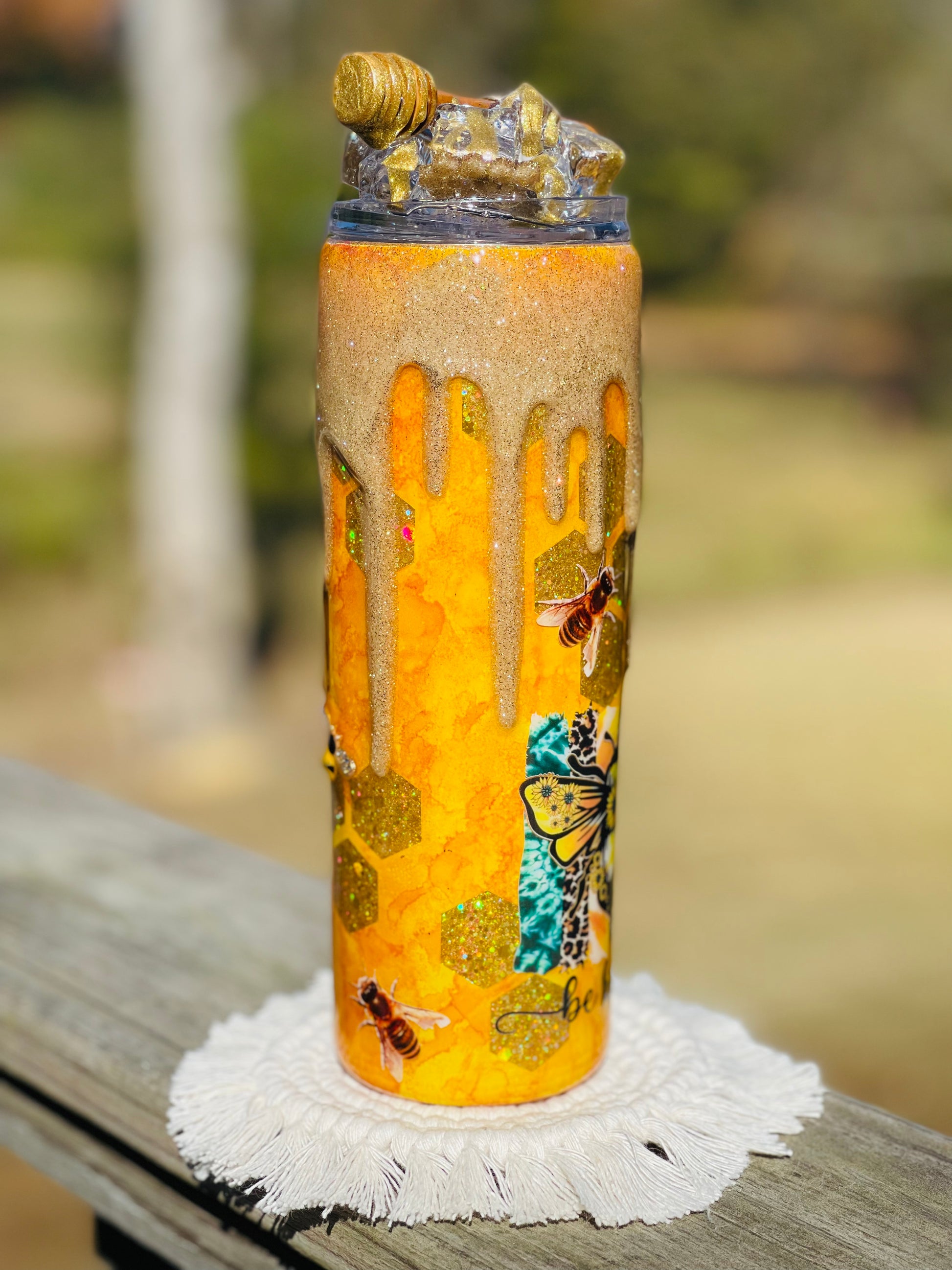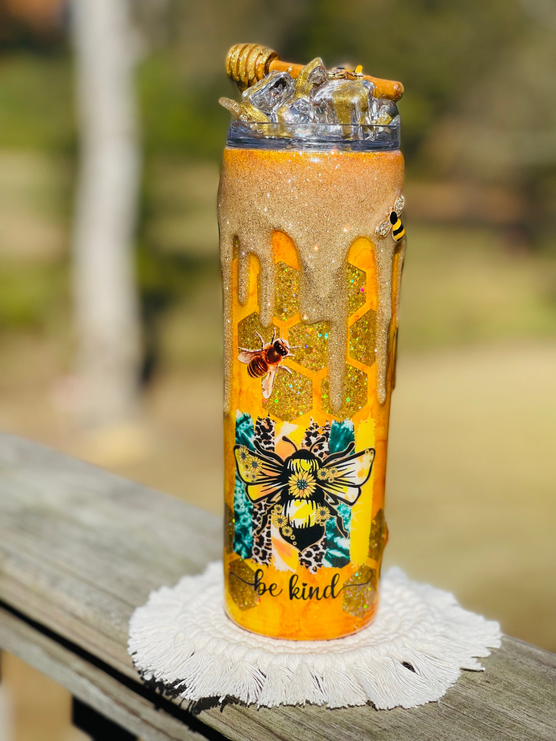 "Bee Kind" 20 ounce tumbler with embellished topper lid