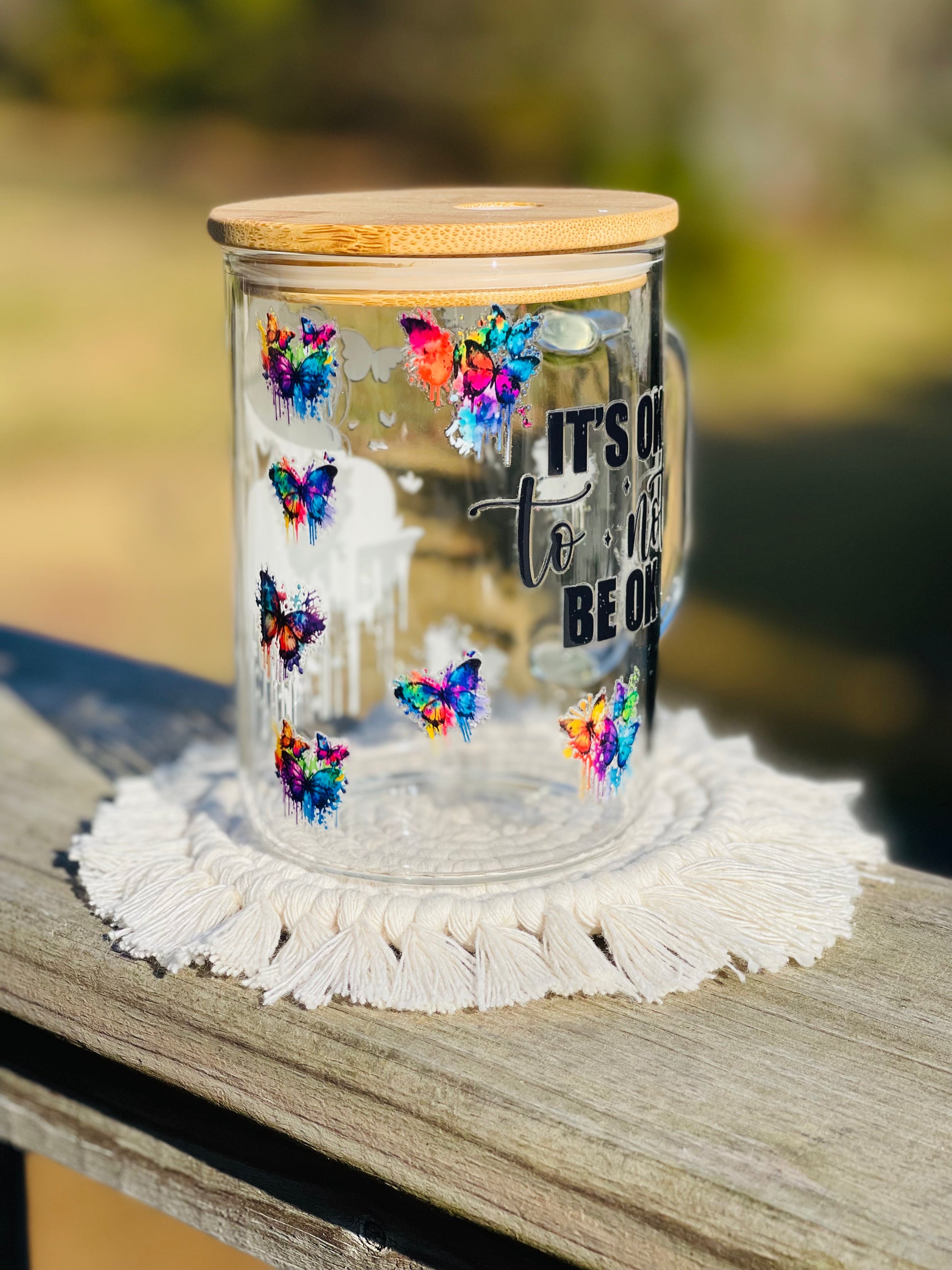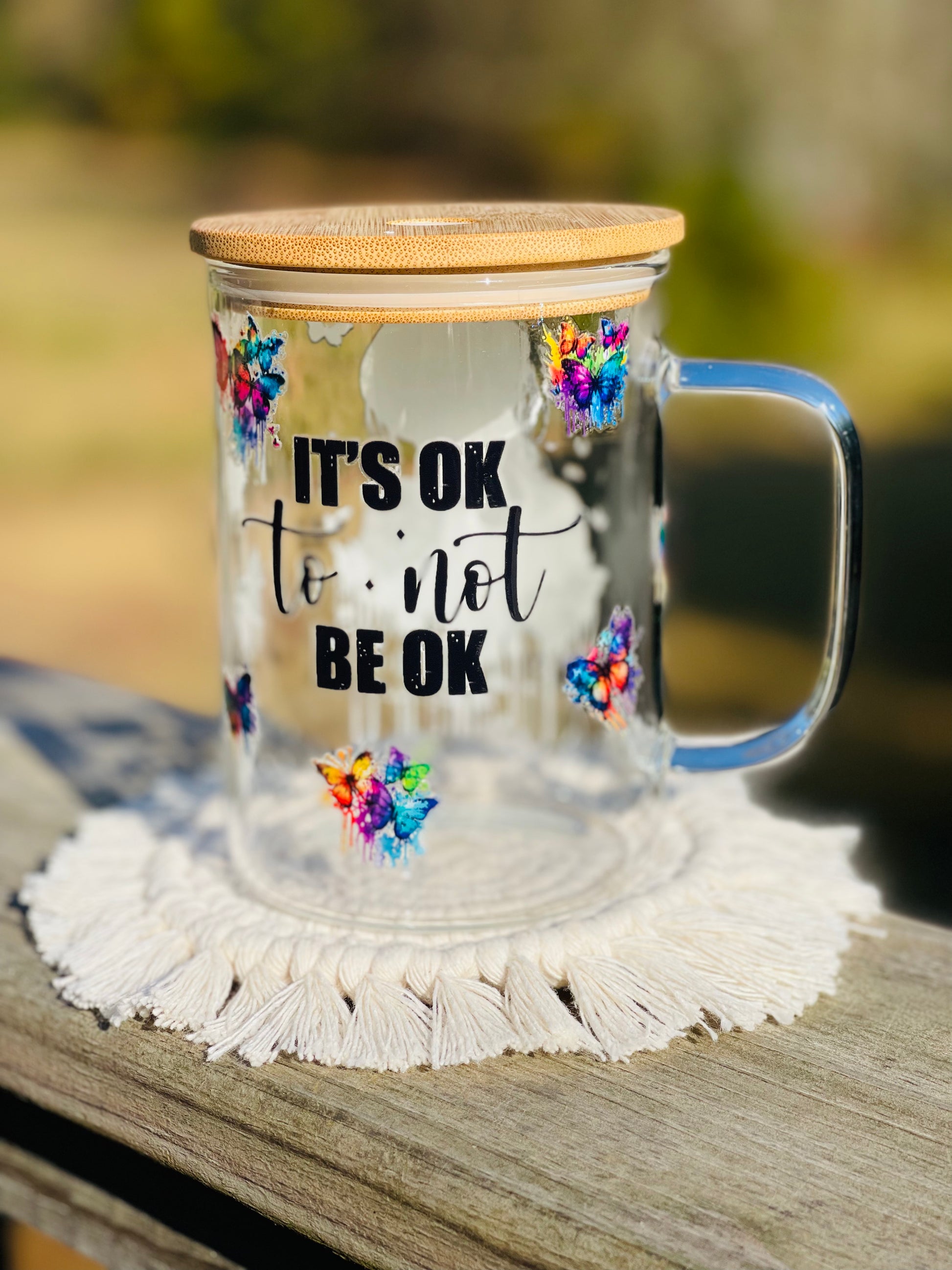 17oz glass drinks are with wrap design "it's ok to not be ok".