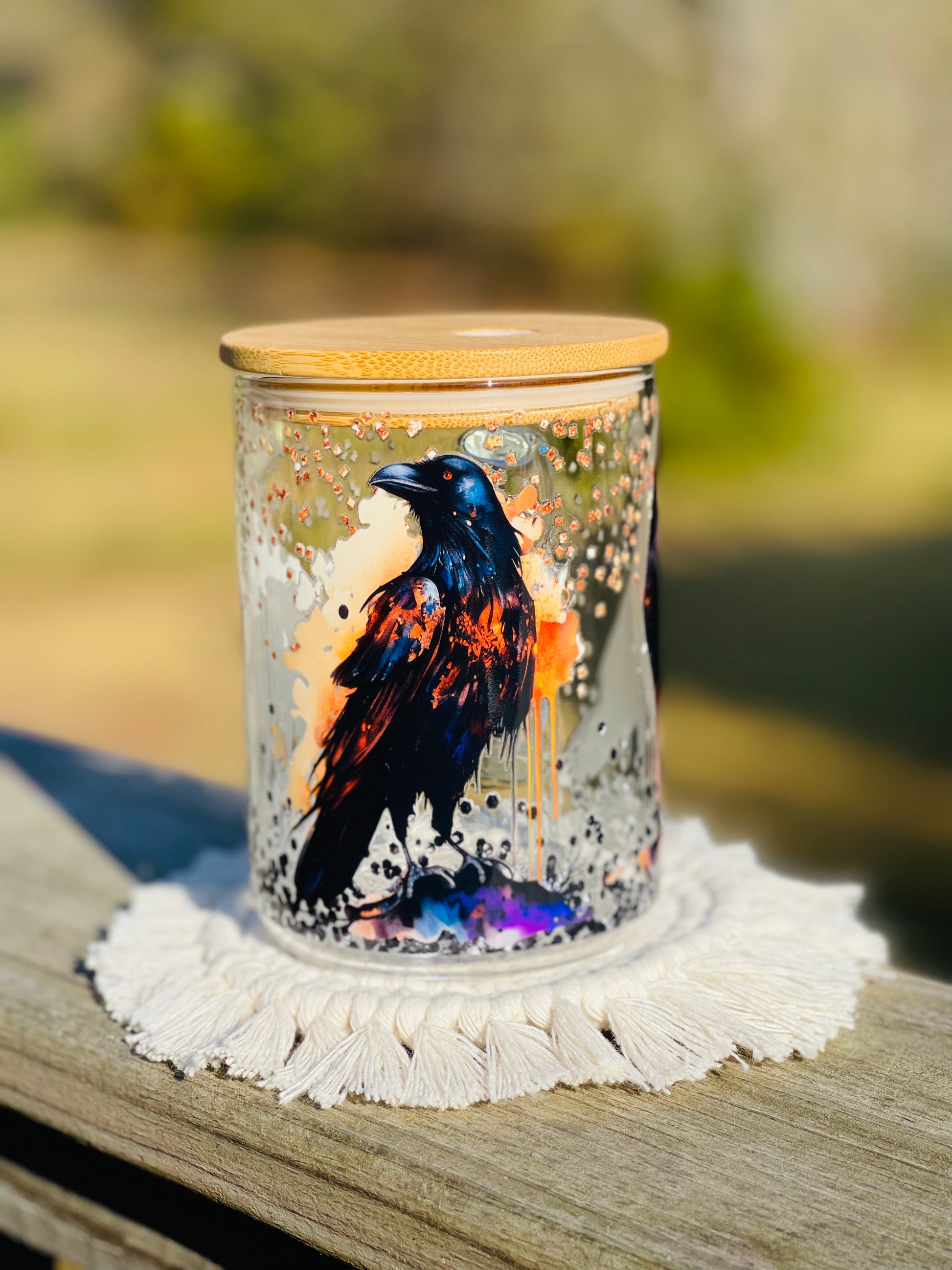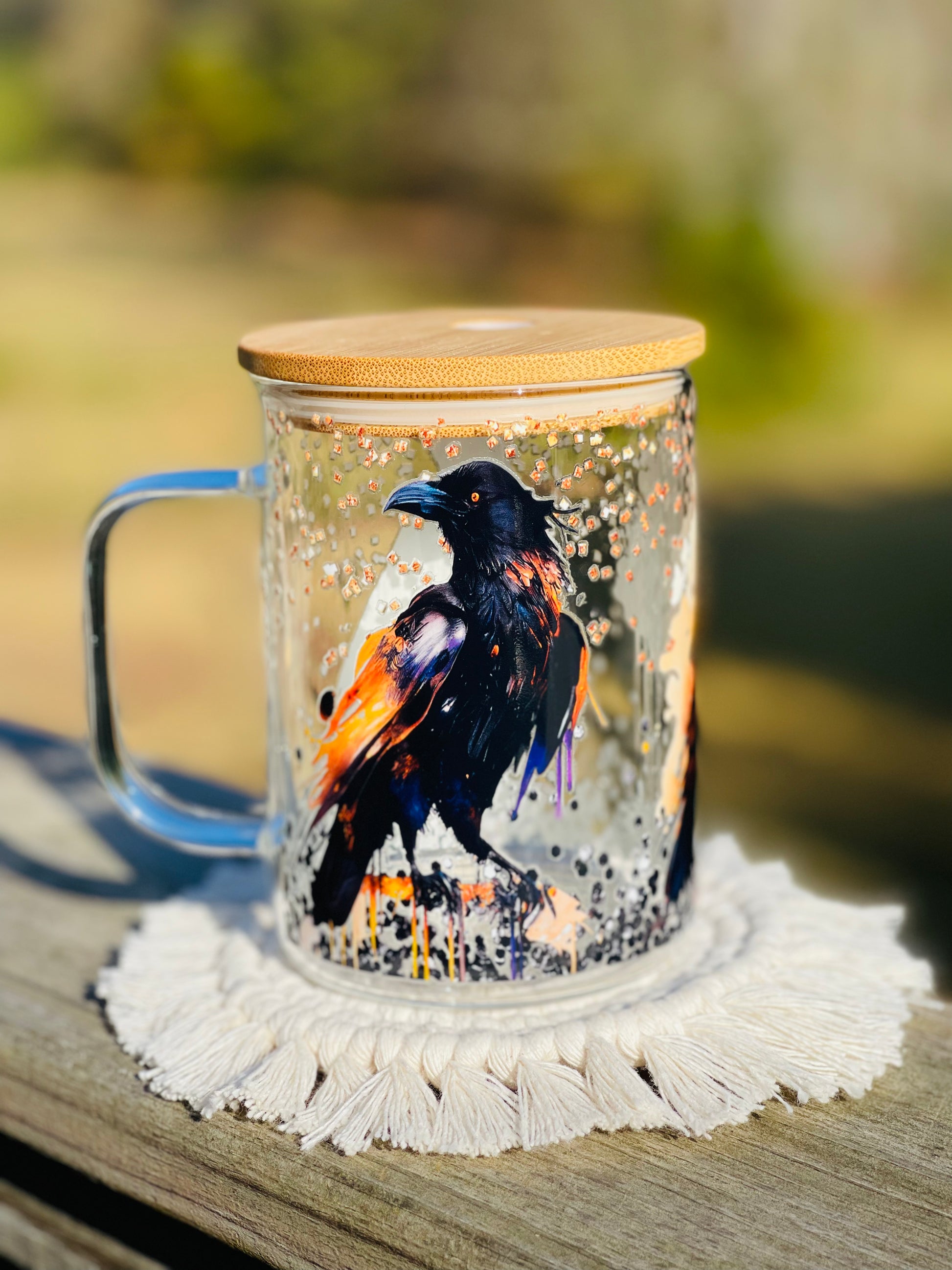 17 ounce glass mug with wrap design. Cup come with bamboo lid and straw.
